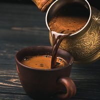 Arabic coffee is mixed with cardamom for a vibrantly rich way to start your day.